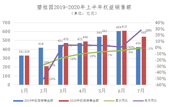作為龍頭房企,碧桂園表現(xiàn)出了較強(qiáng)的抗擾動(dòng)能力,從3月份開始,該公司的銷售額便持續(xù)回升,連續(xù)5個(gè)月實(shí)現(xiàn)同比增長,上半年錄得權(quán)益銷售額2669.5億元。7月份的同比增速更是達(dá)到了27.52%,穩(wěn)中向好。