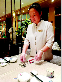 百姓漁村餐飲集團是我市一家較大規模的連鎖餐飲企業,目前擁有8家門店。據百姓漁村南中環店經理王文娟介紹,新冠疫情之前飯店就備有公勺公筷,但食客使用率不高。疫情出現后,群眾在大眾餐飲門店分餐意愿明顯上升,百姓漁村也因勢利導,由集團統一為8家門店定制了公勺公筷。“這批公勺公筷比以往飯店使用的公勺公筷明顯大一號,在餐桌上比較醒目。同時顏色也選用喜慶的紅色,對食客起到很好的提醒作用。”王文娟說,使用公勺公筷既干凈衛生,又防止疾病傳染,是對自己和他人健康負責;用公筷為他人夾菜,更是對他人的尊重。