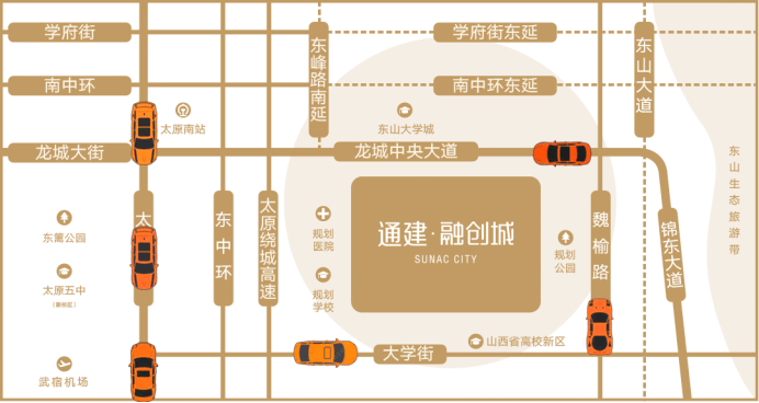 加之,龍城大街東延作為2020年太原市城市規劃建設的重點工程之一,道路通車后,將成為太原至榆次又一條快速路,隨之片區也將會是太榆共建的新熱土。