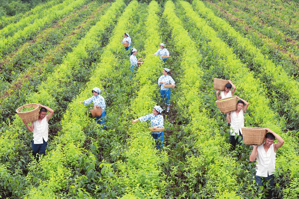 聞喜縣龍鳴農業科技有限公司員工正在采摘藥茶。馮革才 攝