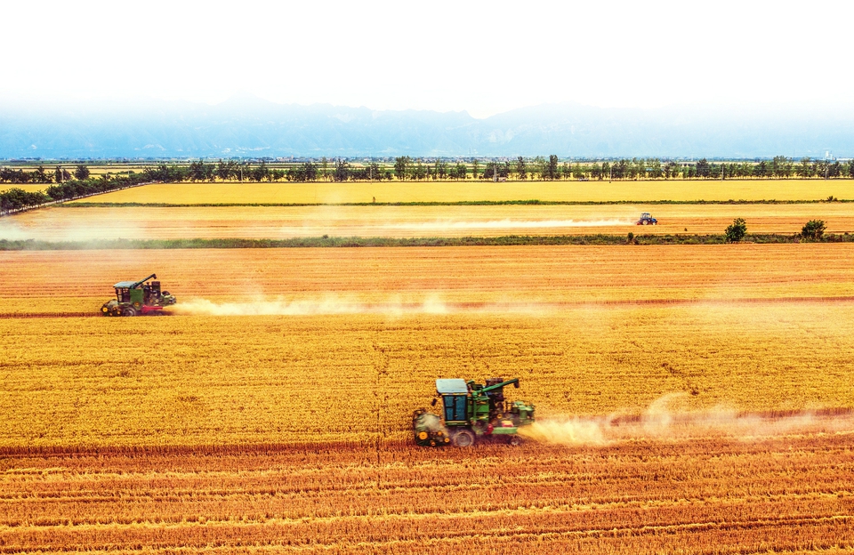 6月6日,永濟市董村農場在收小麥。高志勇攝