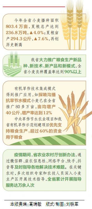 今年以來,我省克服疫情影響,堅持把穩產保供作為首要任務,深入推進農業供給側結構性改革,確保糧食安全和重要農產品供應根深基穩,全省糧食播種面積穩定在4700萬畝以上,夏糧喜獲豐收,小麥單產創歷史新高。目前,秋糧長勢良好,豐收在望。