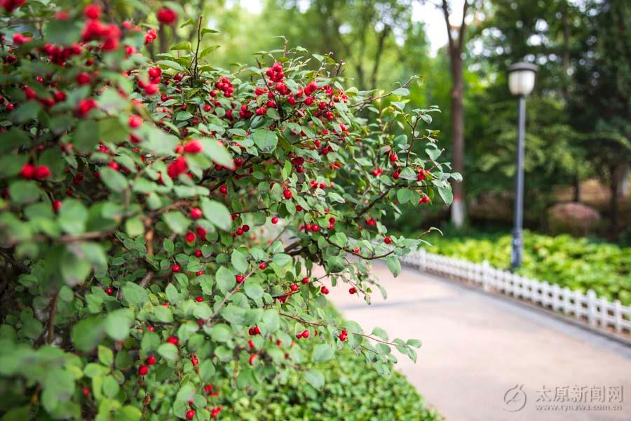 春華秋實,繁花尤未退場,碩果已然閃亮登場。街頭邊、公園里、游園中,一簇簇、一顆顆,形狀各異。青的、黃的、紅色的小果子,是太原秋日最美的裝扮。
