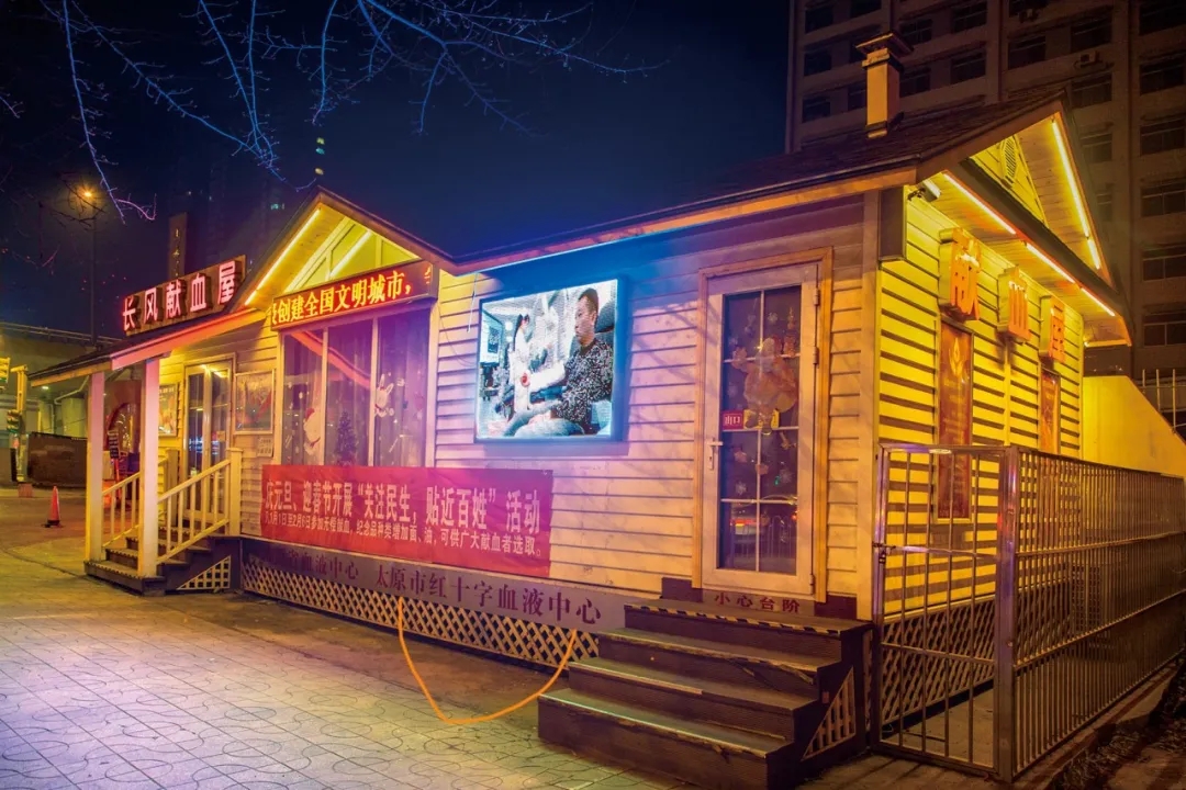 獻血屋面積為60㎡,現平均日采血人次20人以上。自1999年建成以來,獻血屋幾經更新,設計布局與周邊景觀相輝相映,不僅為周邊居民參加無償獻血提供了便利,更成為了長風大街上的一道靚麗風景線。