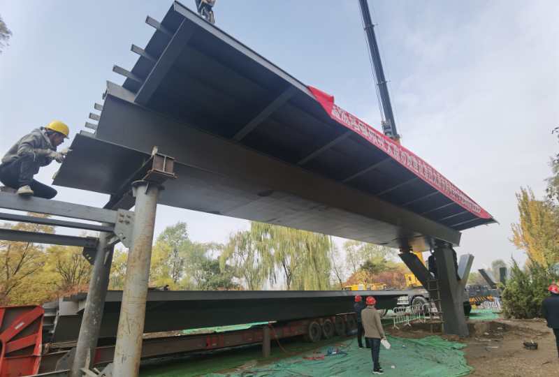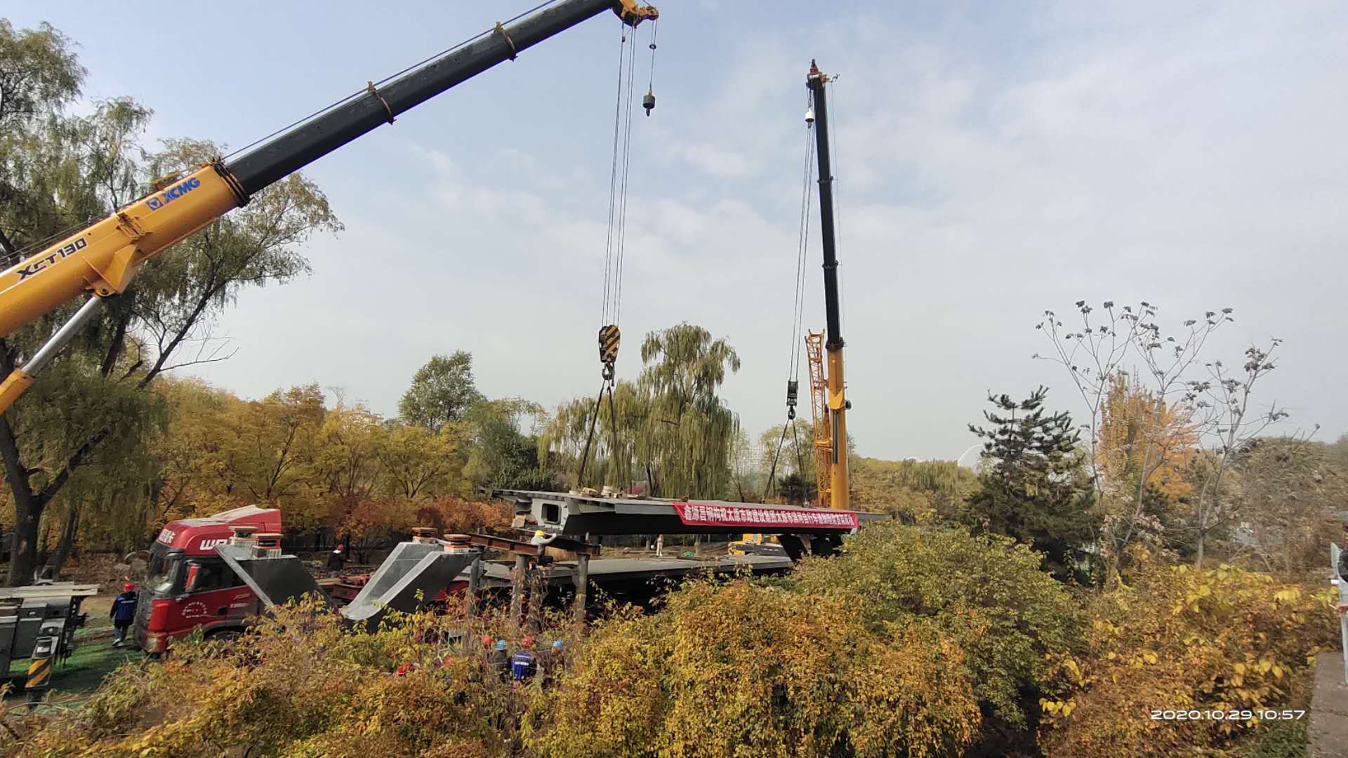 10月29日上午9:00,隨著濱河自行車專用道工程一標段項目部河東高架橋第一片鋼箱梁的成功吊裝,拉開了一標段橋梁部分上部施工的序幕。