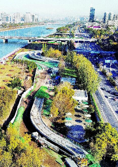 11月4日,在太原汾河景區南內環橋至迎澤橋高架騎行段,施工人員正在緊張吊裝和焊接鋼結構橋面。太原濱河自行車專用道工程北起柴村橋,南至迎賓橋以南2公里,分為河東、河西兩部分,寬為5米,雙向通行。這條景區內自行車專用道建設的全力推進,為推進綠色低碳出行方式,有效緩解市區交通壓力起到積極的作用。