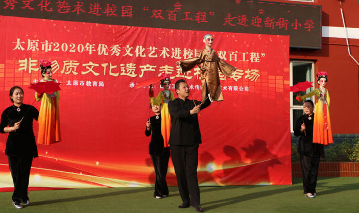 近日,由太原市教育局主辦的優秀文化藝術進校園“雙百工程”走進迎新街小學教育集團總校,非物質文化遺產的藝術家和傳承人給高三全體師生送來了一場豐盛的藝術盛宴。