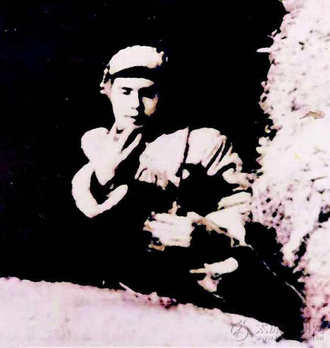 上甘嶺戰役前,劉興華在坑道口,向指揮部報告美軍前沿陣地的活動情況(1952年10月6日)