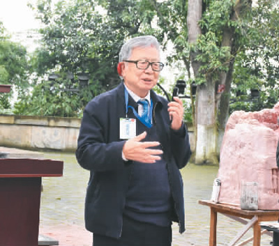 中國工程院院士盧耀如在樂山大佛景區(qū)即興做研學(xué)授課。 宋宇凡攝