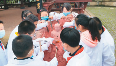 當(dāng)?shù)貙W(xué)生在上研學(xué)課?!」﹫D:樂山市文化廣播電視和旅游局