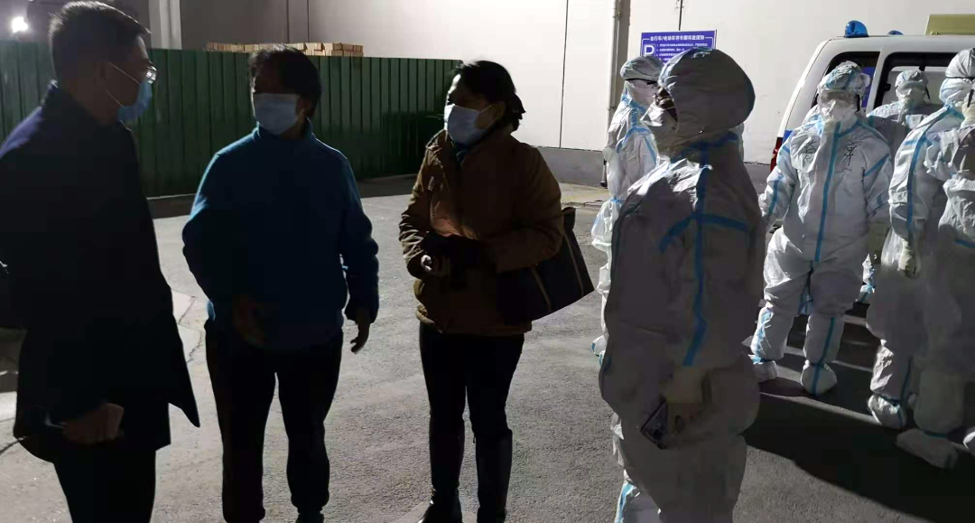 護理部龐貴鳳主任、賀潤蓮副主任在冷鏈檢測一線向市衛健委張澤副主任進行工作匯報