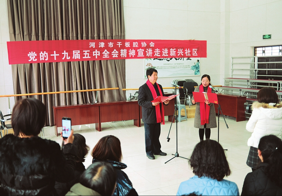 “十四五,新規劃,遠景目標更宏大。要到2035年,經濟騰飛成倍翻。國家強,人民富,各行各業邁大步!”12月1日,天氣雖然有些寒冷,但河津市新興社區里一場宣講黨的十九屆五中全會精神的干板腔演出卻異常火爆。