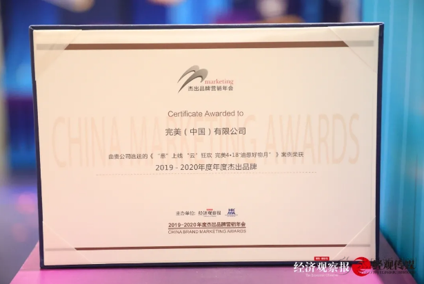 完美公司榮獲“2019-2020年度杰出品牌營銷獎”