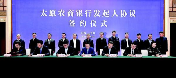 圖為太原農(nóng)商銀行發(fā)起人協(xié)議簽約儀式現(xiàn)場(chǎng)。梁琛攝
