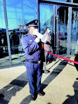 記者來到太原植物園時,在熱帶雨林館入口處,有不少游客排隊等候。因疫情防控要求,參觀植物園溫室館需要分批進入。“歡迎大家來到太原植物園,請大家排好隊依次進入,并戴好口罩入館。希望大家進館之后,愛護館內的花草樹木,感謝大家配合。 Ladies and Gentlemen, welcome to Taiyuan Botanical Garden.Please wear the mask.Please take good care of the flowers and trees.Nice to meet you。 ”在熱帶雨林館前,這位“網紅”保安正在手持喇叭,中、英文輪流切換,指導游客們有序排隊并佩戴口罩。當看到有乘客自覺戴好口罩時,他還不忘夸一句:“ You are best! ”這位“網紅”保安名叫高連福,今年50歲,從初中接觸到英語時,就對英語產生了濃厚的興趣。自從應聘到太原植物園當保安,他就琢磨著如何把學生時代學的英語撿起來,說不定哪天會用到。“我覺得隨著時間的推移,太原植物園肯定會迎來外賓,跟外國友人交流是勢在必行的。雖然我的英語發音不太標準,但我只是想用我僅有的一點英語知識,讓游客高興而來,滿意而去。”高連福說。