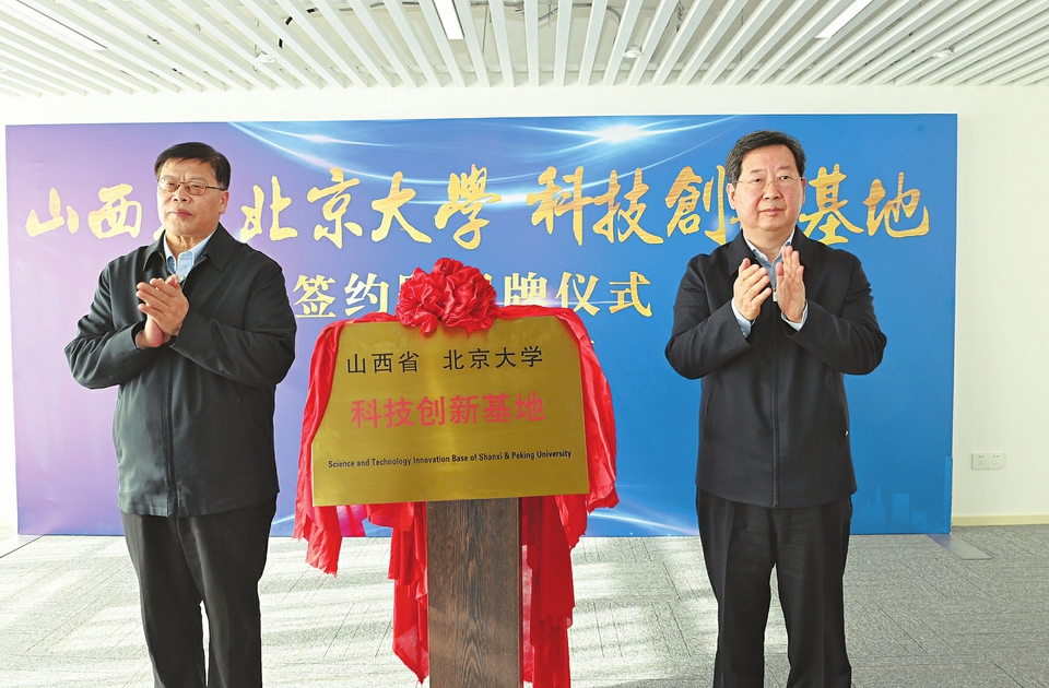 會談結束后,雙方簽署了《山西省人民政府與北京大學共建科技創新基地合作協議》。樓陽生、邱水平共同為山西省—北京大學科技創新基地揭牌。根據協議,省校雙方將聚焦世界科技前沿、國家戰略需求、山西轉型發展,充分發揮山西產業、區位、資源優勢與北大科技、人才、學科優勢,采用“科研飛地”新模式,共同打造集科學研究、成果轉化、人才培養等于一體的新型科技創新平臺。