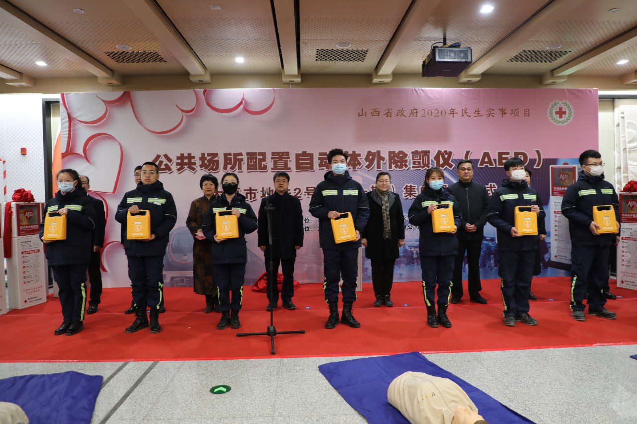 在太原地鐵2號線即將投入運行之際,12月15日,山西省政府2020年民生實事項目—公共場所配置自動體外除顫儀(AED)太原地鐵2號線集中投放儀式在龍興街站舉行。