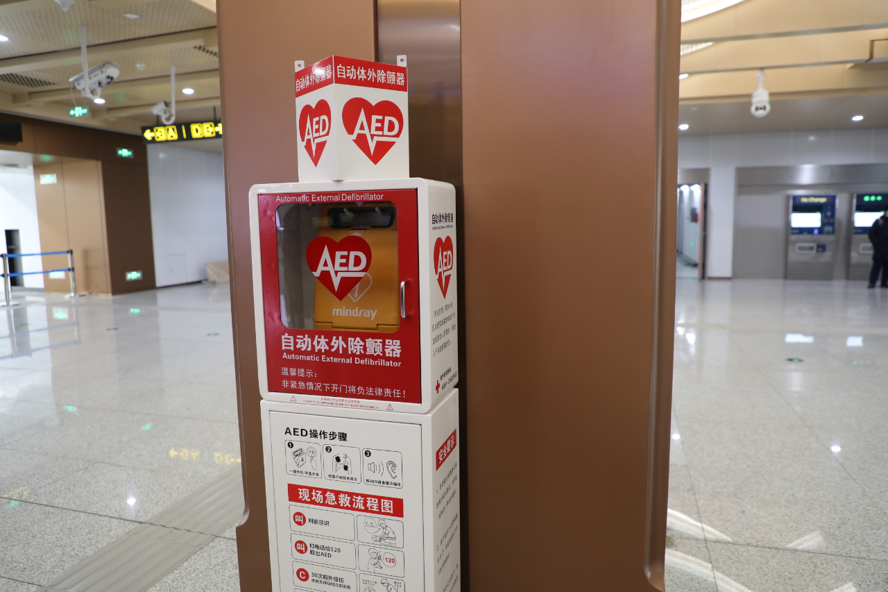 “按照山西省民生實事項目安排,太原地鐵2號線23個站點,正式配置自動體外除顫器(AED),每個站點1臺,實現(xiàn)了AED配置的全覆蓋。并且,太原市地鐵投入運行與急救設備(AED)同時配置,也走在了國內地鐵行業(yè)前列。”太原市紅十字會秘書長張玉平介紹到。