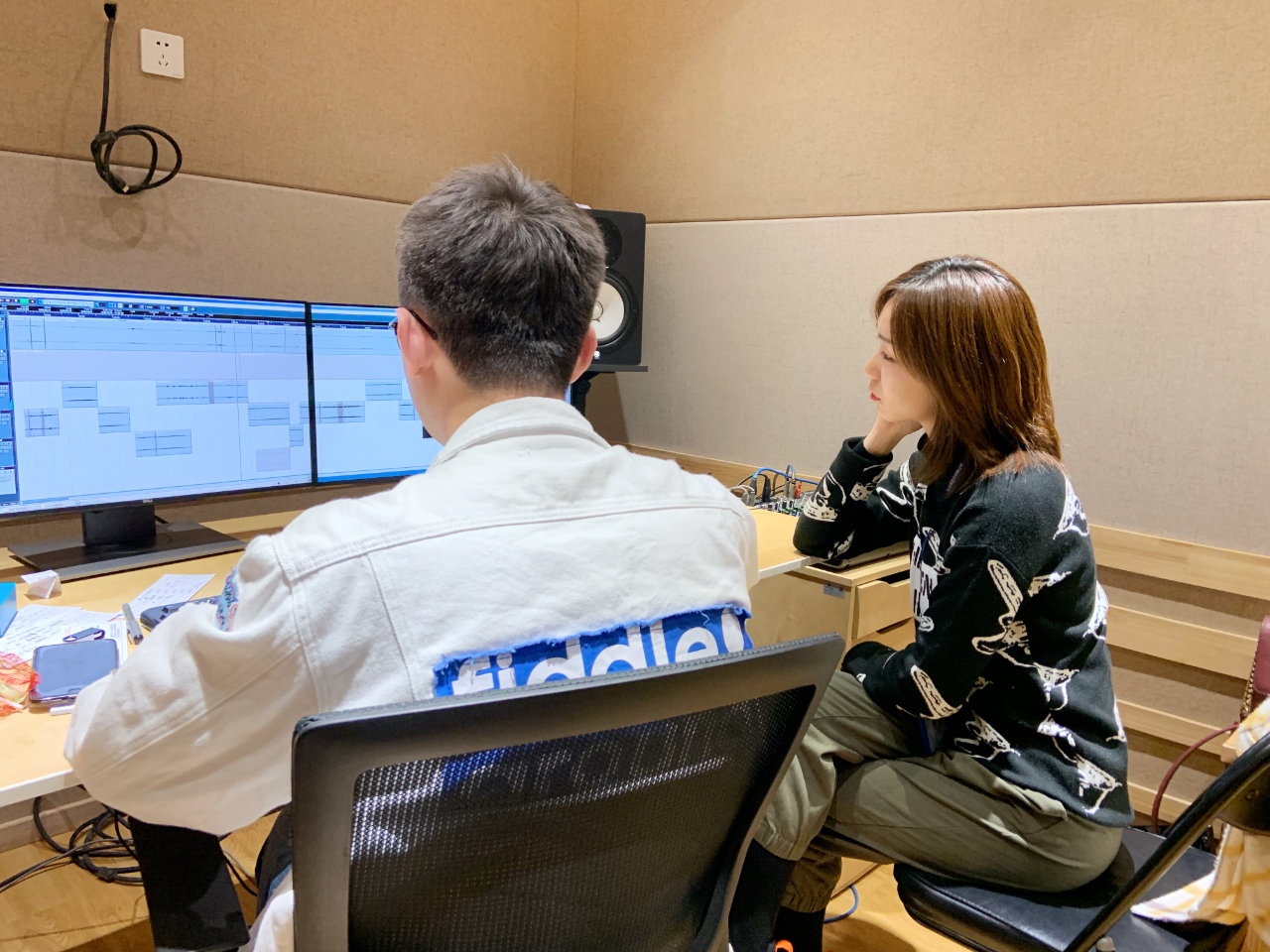 徐逸曈與同事在機房為欄目中的短片做音樂