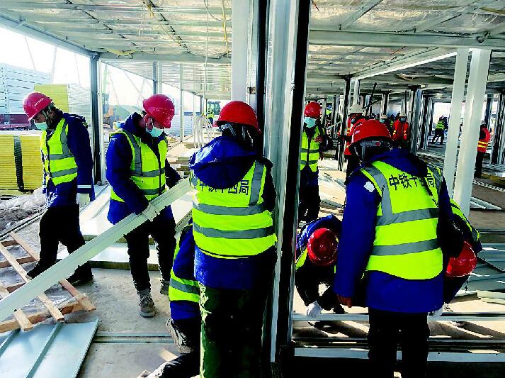 黃莊公寓隔離場所位于河北省石家莊市正定縣與藁城區交界處黃莊村南,總占地面積510畝,用于安置新冠肺炎密切接觸者和次密切接觸者等人員。當晚,103標段項目負責人荊永波接到集團總部安排后,第一時間協調好車輛、物資,并通知大家,在確保太原地鐵正常施工的前提下,項目部要抽調建設者馳援石家莊,希望大家積極報名。31歲的邵魯來自山東濟南,是中鐵十四局太原地鐵1號線103標段項目副經理,參與了太原地鐵2號線建設的全過程,已經在太原工作了近五年。2號線開通后,他繼續留在太原建設1號線。邵魯明白,這種“急活”的現場調度很關鍵,而自己恰好這方面經驗多些,去了肯定能幫上忙,所以當下積極報名“參戰”,連夜趕赴石家莊。1月18日,記者電話連線邵魯得知,援建隊伍抵達現場,簡單交接后迅即投入戰斗。板材卸車,立柱安裝、集成板房搭建……現場人員機械輪番施工、有條不紊。目前,建設現場已有不少集成房屋拼裝完成,隨后可以在房內安裝隔離床、廁所、整體衛浴等必要設施。