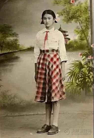 14歲的周改英戴上紅領(lǐng)巾的第一天,在太原工人攝影社拍照紀(jì)念