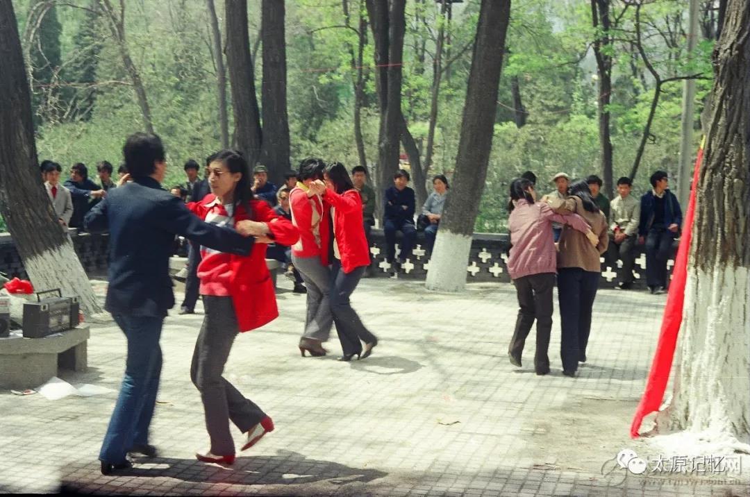 “五四”青年節(jié),太原一電廠和太原市審計(jì)局在晉祠公園組織團(tuán)員活動。在雙卡錄音機(jī)播放的舞曲聲中,大家跳起了交誼舞。