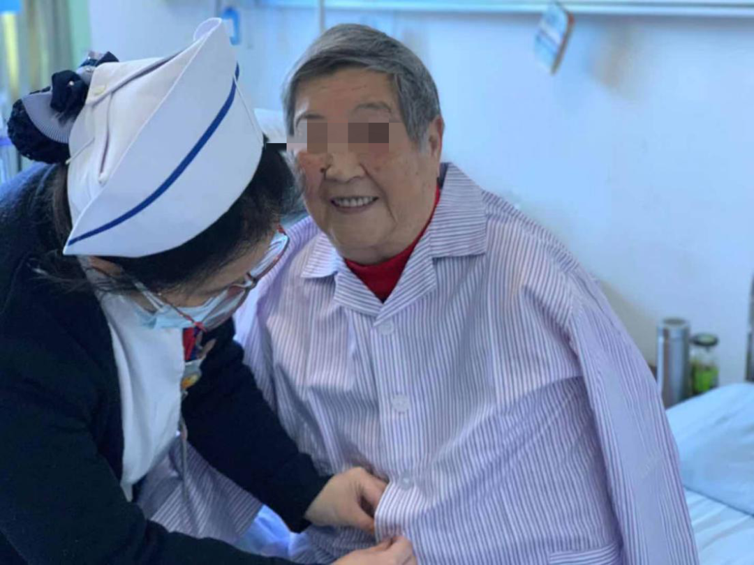 剛入住時,劉大爺意識不清楚、脾氣暴躁,既不能自主進食,也不好好配合治療。全科醫學科護理團隊特意將其病房安置到護理站對面,安排專人輪流悉心照料。經過半個多月的對癥治療、悉心照料,劉大爺病情逐漸好轉。在查房時,老爺子微笑著向醫護人員擺出勝利的“V”字手勢。