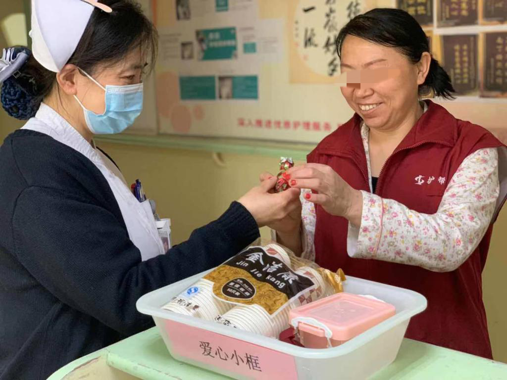 不僅如此,科室在護理站還設置了愛心小框,為患者準備了一次性紙杯、一次性吸管,同時還為患者提供了多功能的充電器。“好多患者都是緊急住院,家屬來時比較著急,好多時候都沒有帶齊東西,我們為他們提供一點小小的幫助,就可以讓他們全身心地去照顧患者,并可以及時向家人朋友報聲平安,為患者解決后顧之憂。”副護士長喬潔說道。