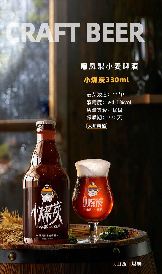 山西的煤,世界皆知;山西的醋,口感綿密;山西的酒,厚重醇香。“見問酒家何處有,牧童遙指杏花村。”說的就是山西酒。因為歷史原因,山西酒也有自己的特點:初品甘醇厚重,細嘗下又帶著糧食特有的純粹自然。“小煤炭”啤酒也依靠這樣純凈口感,用精釀迎合年輕人時尚不粗俗的調性。