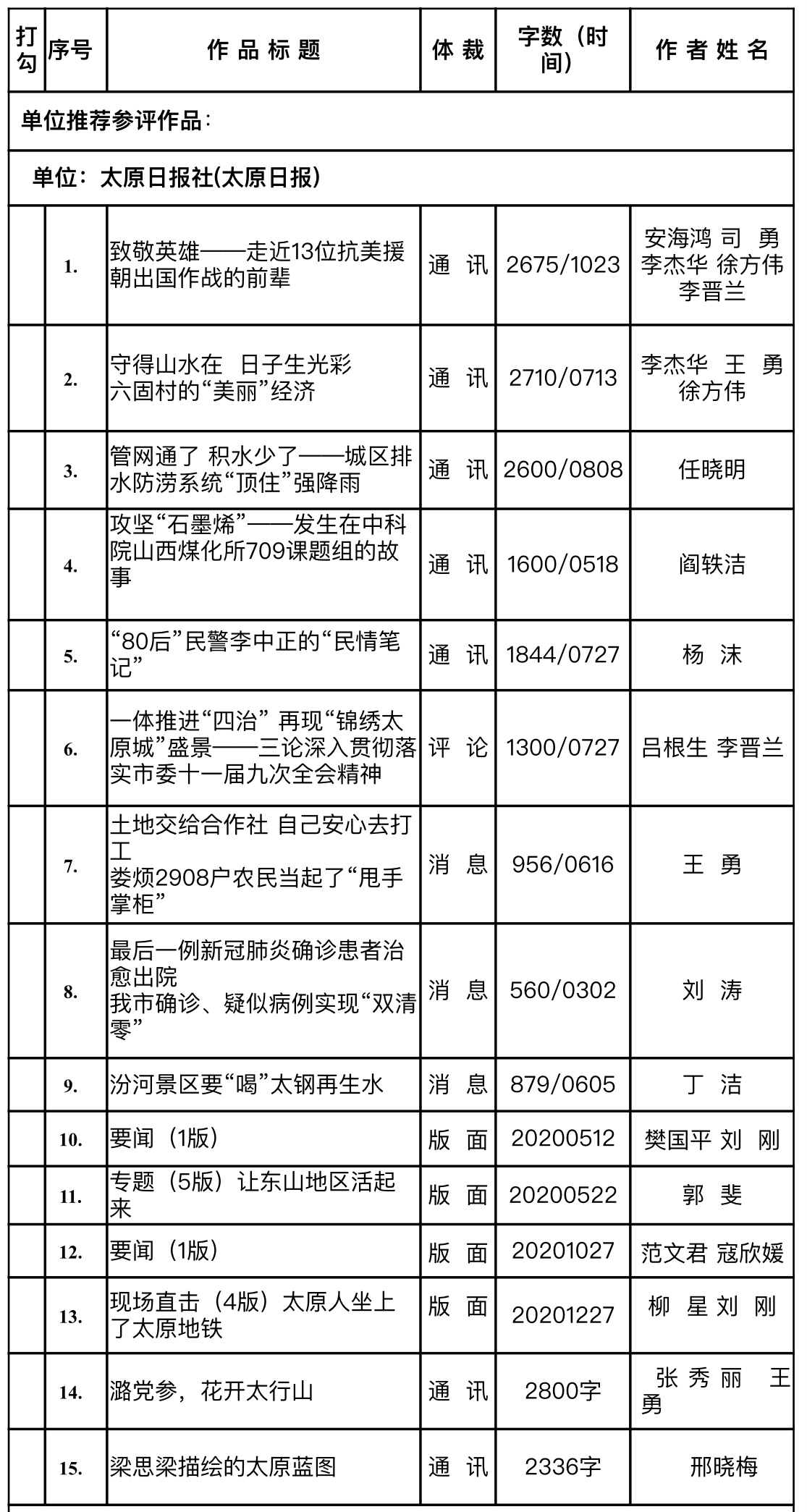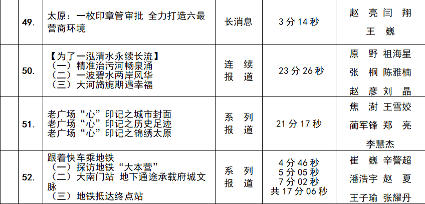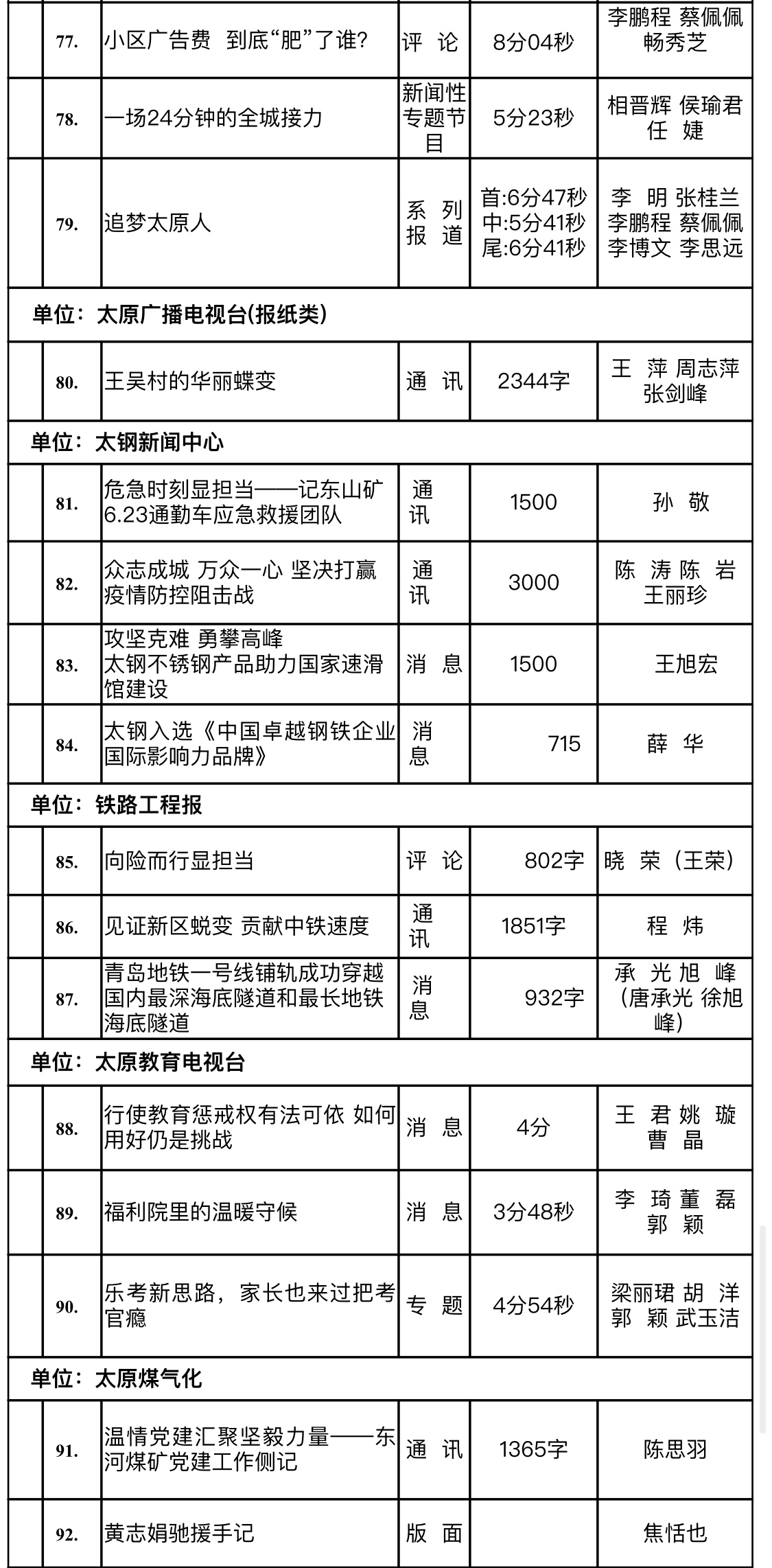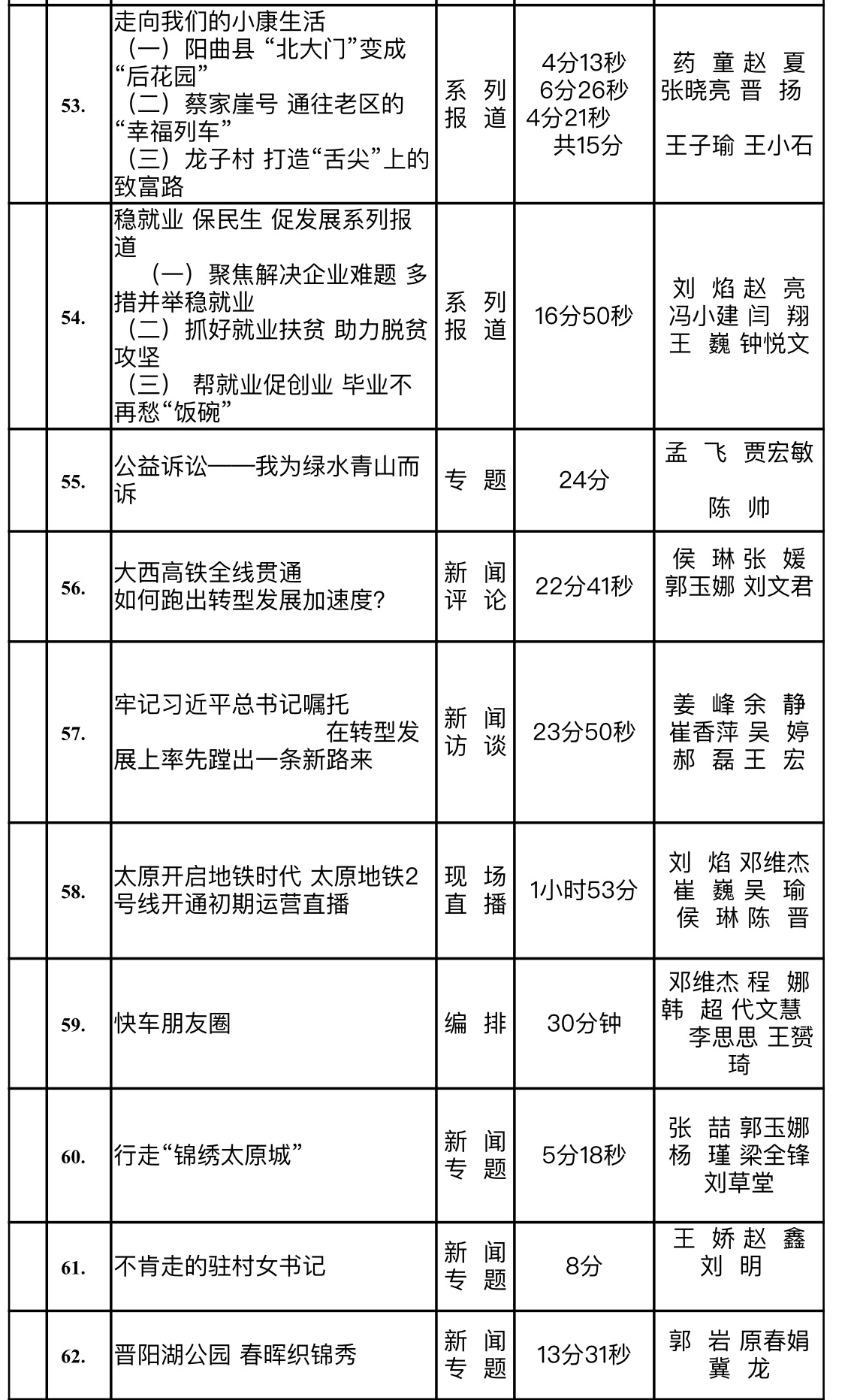 第三十屆(2020年度)太原新聞獎100件入圍作品公示目錄表