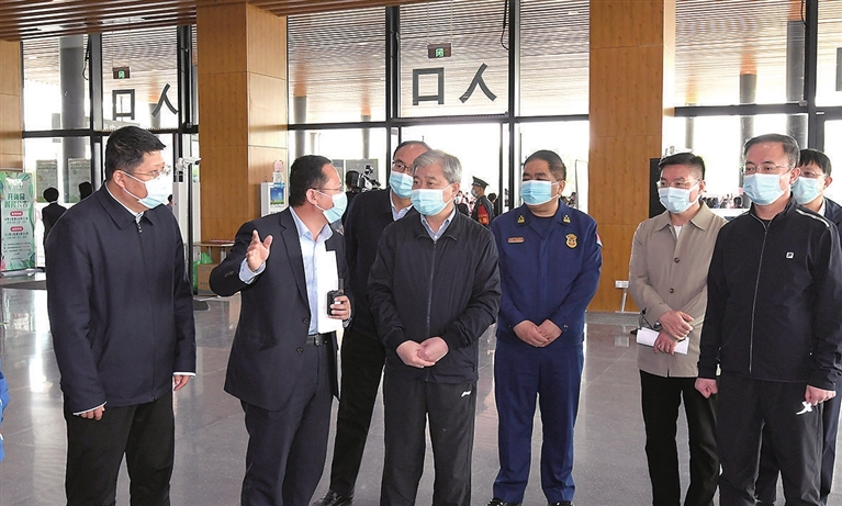火車站是外防疫情輸入的第一道關口。羅清宇來到太原南站西廣場,詳細了解進出站車次、客流數據,認真察看疫情防控人員配置和措施落實情況,強調,要以高度的責任感和使命感,對所有來并返并人員全覆蓋體溫檢測、健康碼核驗,嚴格消毒通風等措施,以戰時狀態切實把關口守住守好。羅清宇還與正在執勤的公安民警、武警官兵親切握手,向他們致以節日的問候,鼓勵大家堅持“四警聯勤”的好經驗、好做法,緊盯重點部位和關鍵環節,加強聯合武裝巡邏,強化應急演練,提升處突能力,忠于職守、嚴密防范,扎牢安保維穩第一道防線。