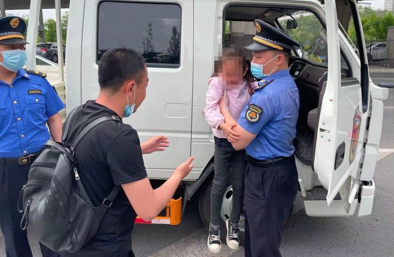 溝通后發(fā)現(xiàn),原來這名6歲的小女孩姓肖,在游玩期間父母走散了,非常害怕。于是,執(zhí)法隊員一邊安撫小女孩的情緒把孩子安放到執(zhí)法車輛中,并緊急聯(lián)系其父母。一個小時后,通過聯(lián)系手機號聯(lián)系定位,執(zhí)法隊員找到了這名小女孩的爸爸。小女孩的爸爸對執(zhí)法隊員連連道謝,并表示以后會看管好孩子。