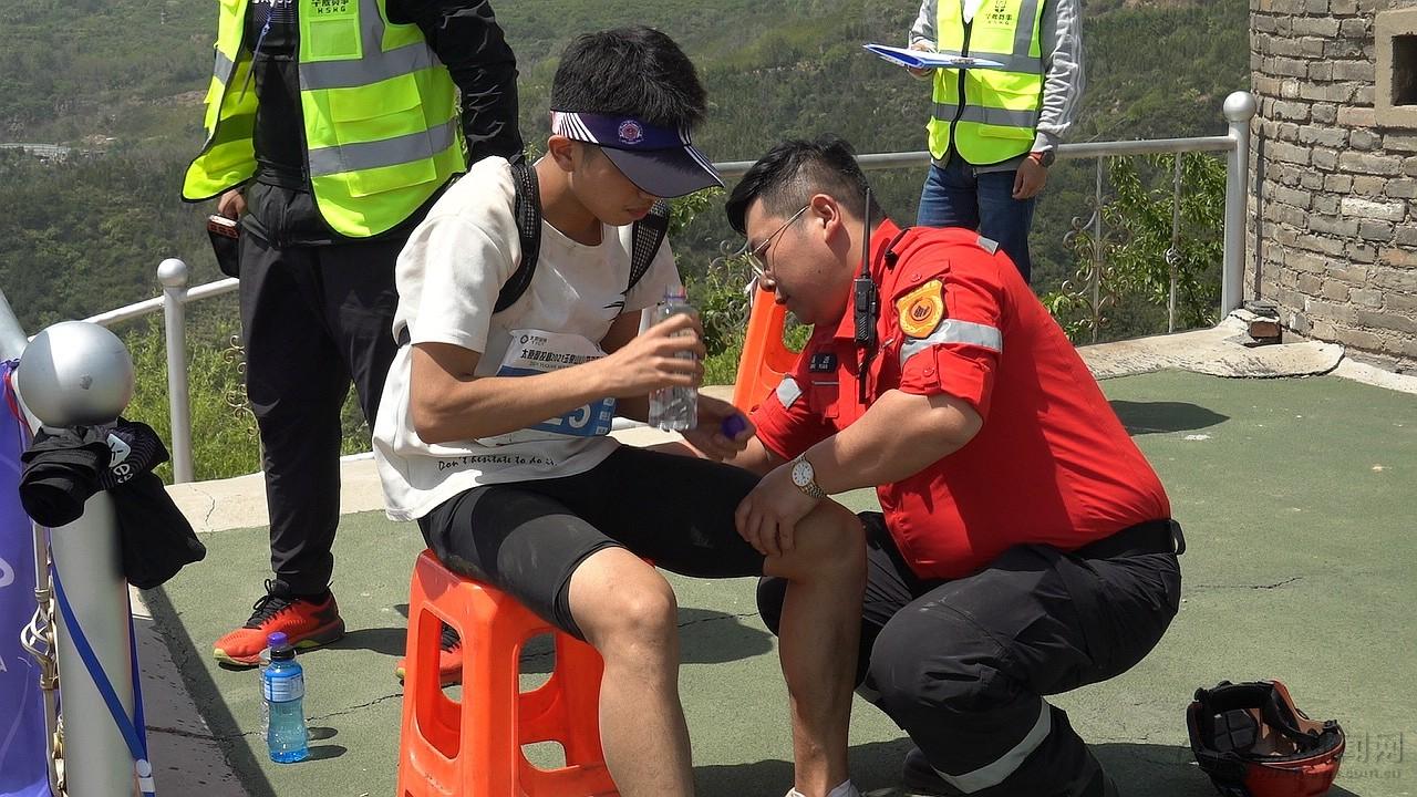 比賽中,山地越挑戰(zhàn)組,一位19歲的學(xué)生選手廖敏,行至大約三分之二時(shí),大腿突然抽筋,自己仍堅(jiān)持到打點(diǎn)記錄的服務(wù)站,經(jīng)過天龍救援隊(duì)工作人員給他進(jìn)行按摩治療后,廖敏又返回賽場,他的堅(jiān)持讓我們看到了不輕言放棄的拼搏精神!