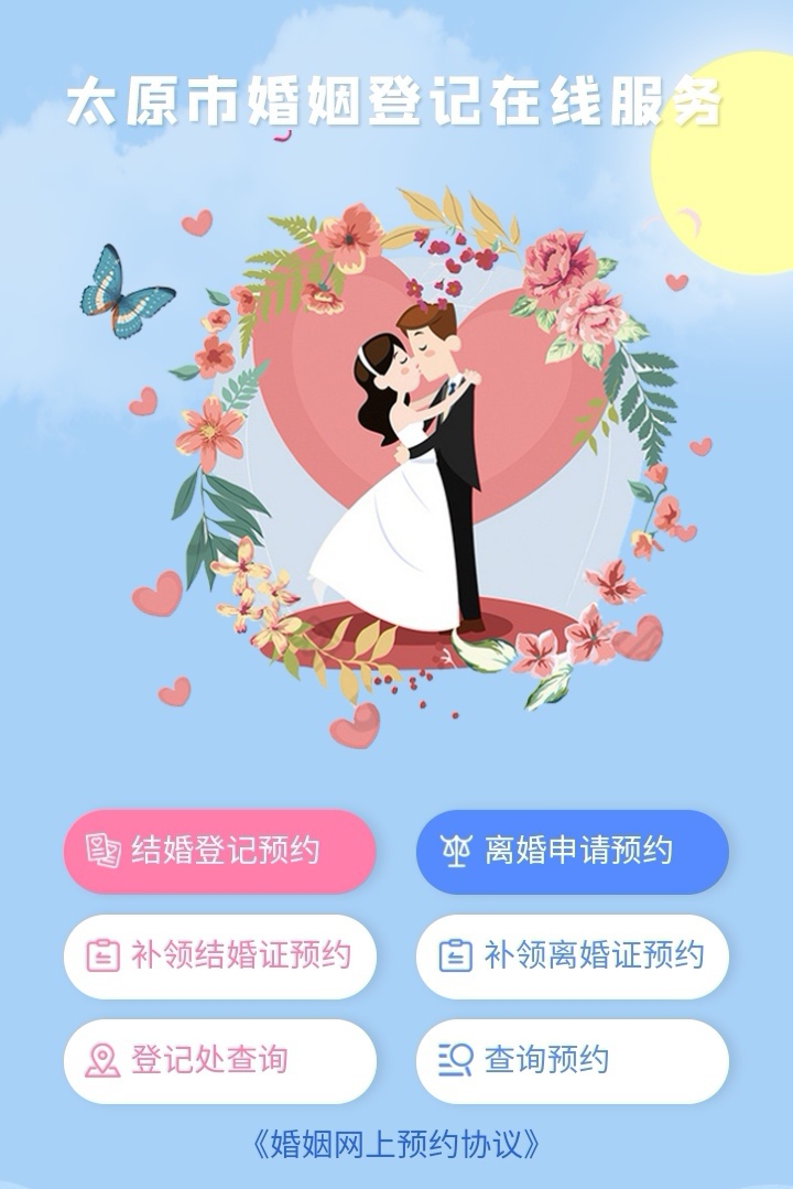 今年“520”預約登記實行線上預約和線下預約相結合的方式。準備登記的準新人們,可以通過手機“我的太原”APP首頁“婚姻登記預約”模塊進行預約登記,也可以通過查詢各縣(市、區)民政局婚姻登記機關電話進行電話預約。線上、線下各占50%的預約量,原則上所有人員必須預約登記。