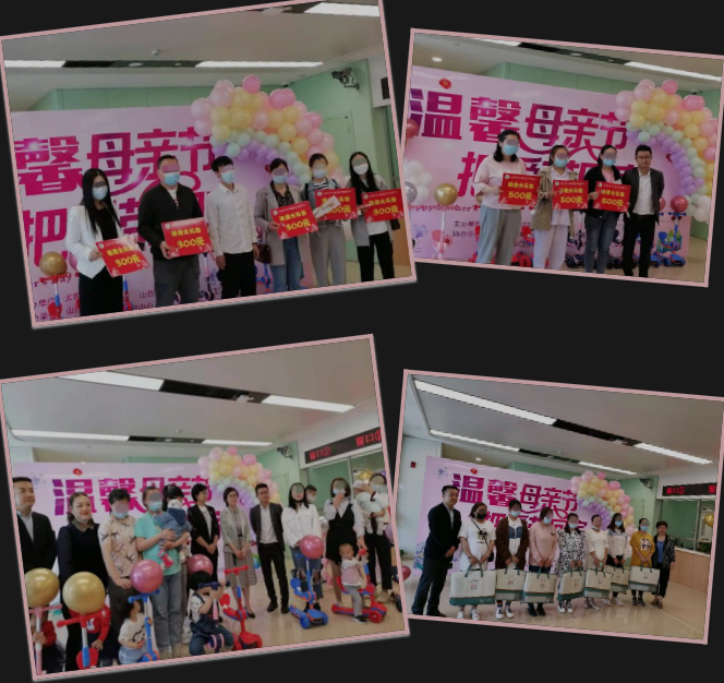 5月9日,由太原市中心醫院主辦,山西省女醫師協會、山西現代婦產醫院、太原市牙友口腔診療中心、民建太原市委市直二支部承辦的“溫馨母親節,把愛帶回家”活動在太原市中心醫院婦產生殖中心如期舉行。山西省女醫師協會會長趙龍鳳、山西現代婦產醫院院長陳志敏、副院長陳良、民建太原市委市直二支部主委趙力、太原市中心醫院產科主任王麗娟等嘉賓出席了活動現場,活動還邀請了孕媽、寶媽及備孕夫妻代表參加。