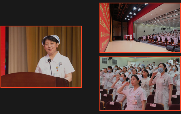 在護理部主任龐貴鳳的帶領下,全體護理人員重溫《南丁格爾誓言》,牢記護理人的使命和責任。她在發言中贊揚了護理工作者辛勤耕耘的精神和品質,同時向關心和支持護理工作發展的各級領導表示了衷心的感謝,并對醫院新發展時期的護理工作提出了更高的期望。