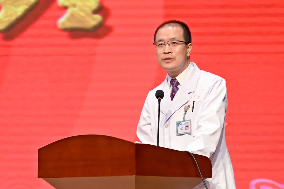 黨委書記趙永生向受表彰的同志們致以熱烈的祝賀,對全體護理人員的貢獻表達了衷心的感謝。他首先回顧了在黨的領導下,新中國護理事業的蓬勃發展歷程,深刻闡述了紅色基因的深刻內涵,勉勵大家繼承先行者的精神,不忘初心、牢記使命,不忘宗旨、服務人民,不忘歸屬、以院為家,不忘創新、精益求精,對標一流、爭創一流。滄海當前,必當揚帆破浪;任重道遠,更需砥礪前行。希望全體護理人在奮斗中領悟生命的瑰麗和人生的真諦,用激情和熱血共同創造護理事業的美好未來。