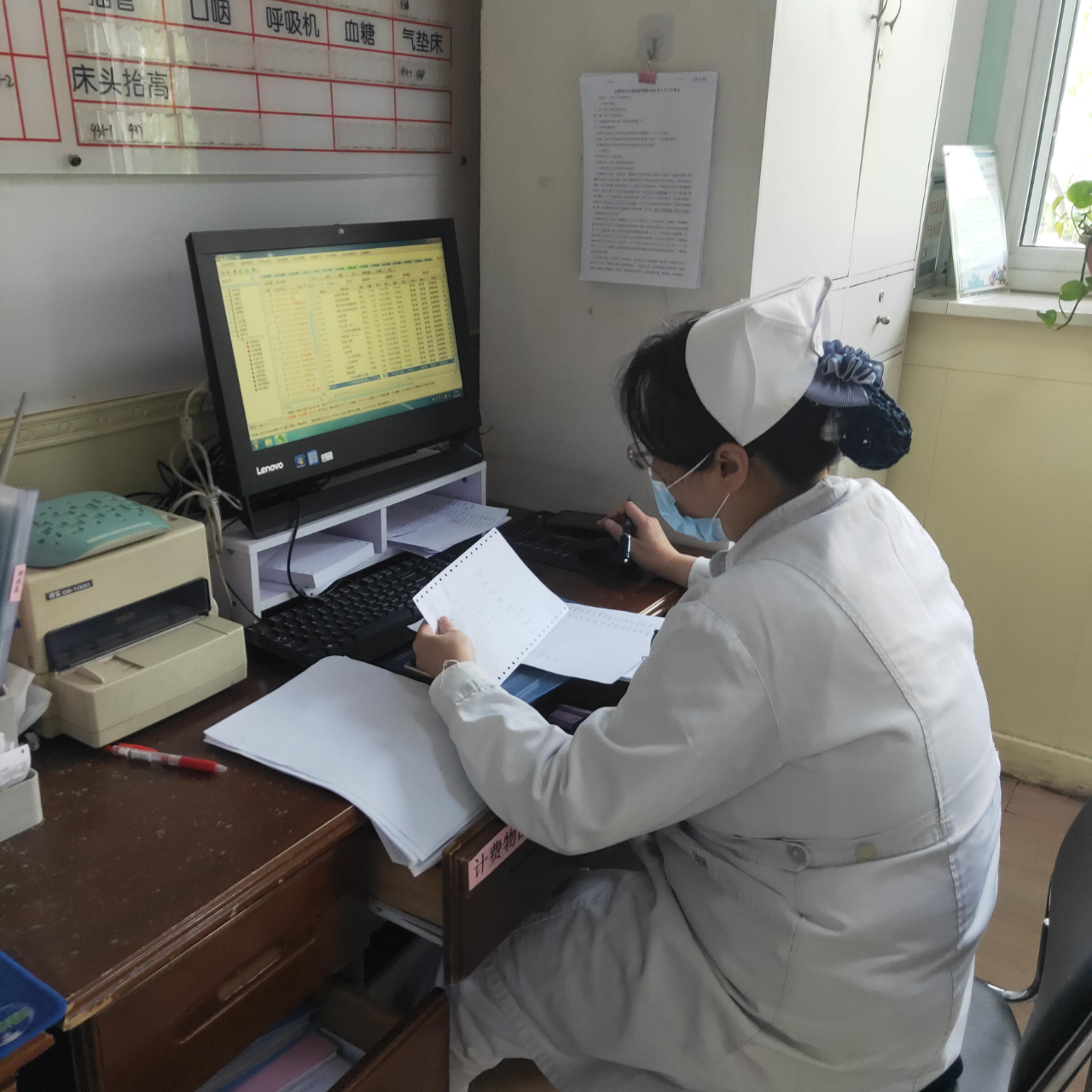 坐在電腦旁的護士小郭,工作中時刻保持嚴謹認真的態度。在旁人看來,她的工作千頭萬緒、焦頭爛額,可她永遠能鎮定自若地完成手頭工作。