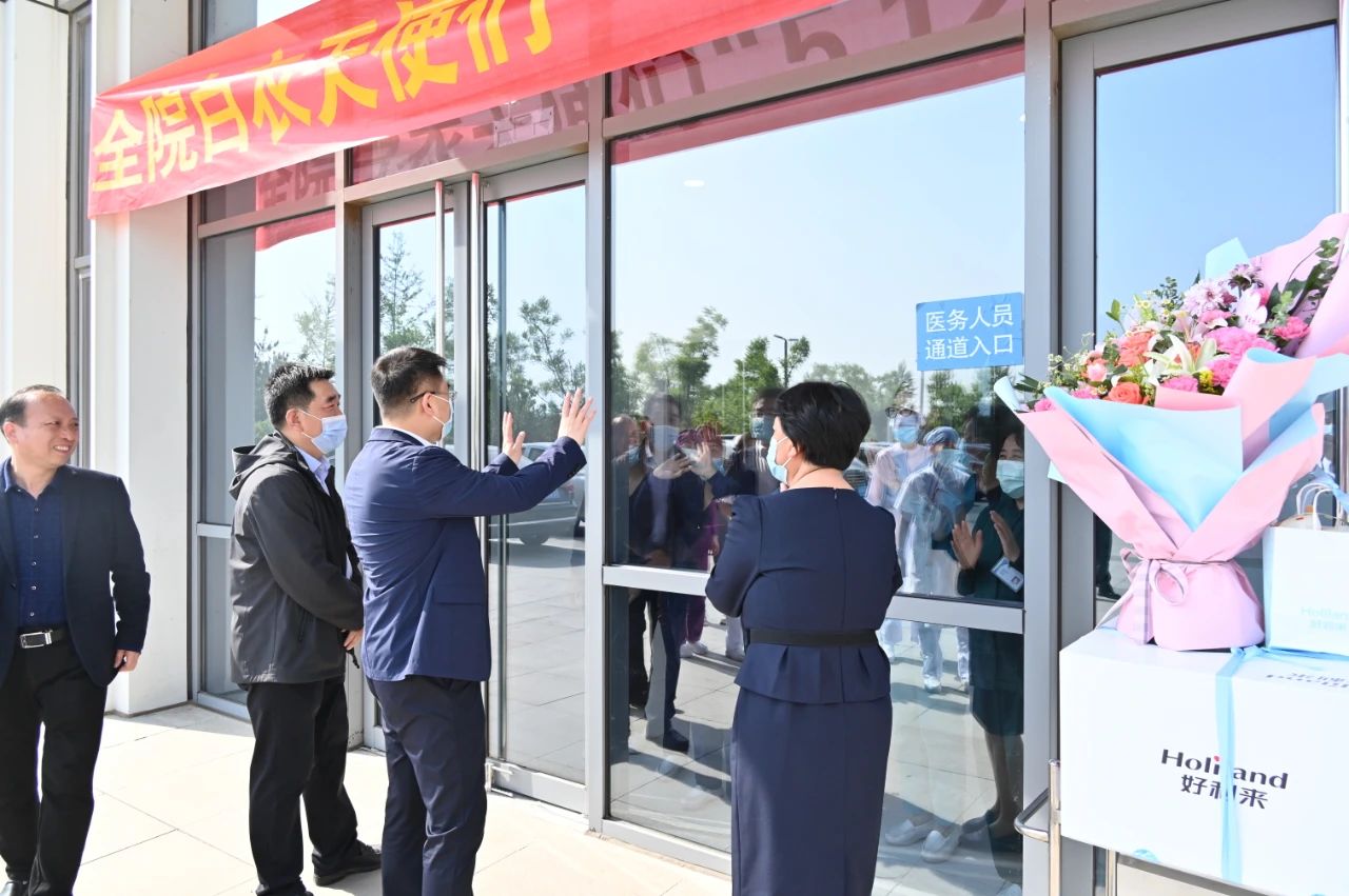 慰問過程中,市衛(wèi)健委領(lǐng)導(dǎo)與醫(yī)院境外隔離病區(qū)護(hù)理人員隔窗進(jìn)行了親切交流,并向這支日夜奮斗在疫情防控第一線的護(hù)理先鋒隊(duì)伍致以節(jié)日的祝福。