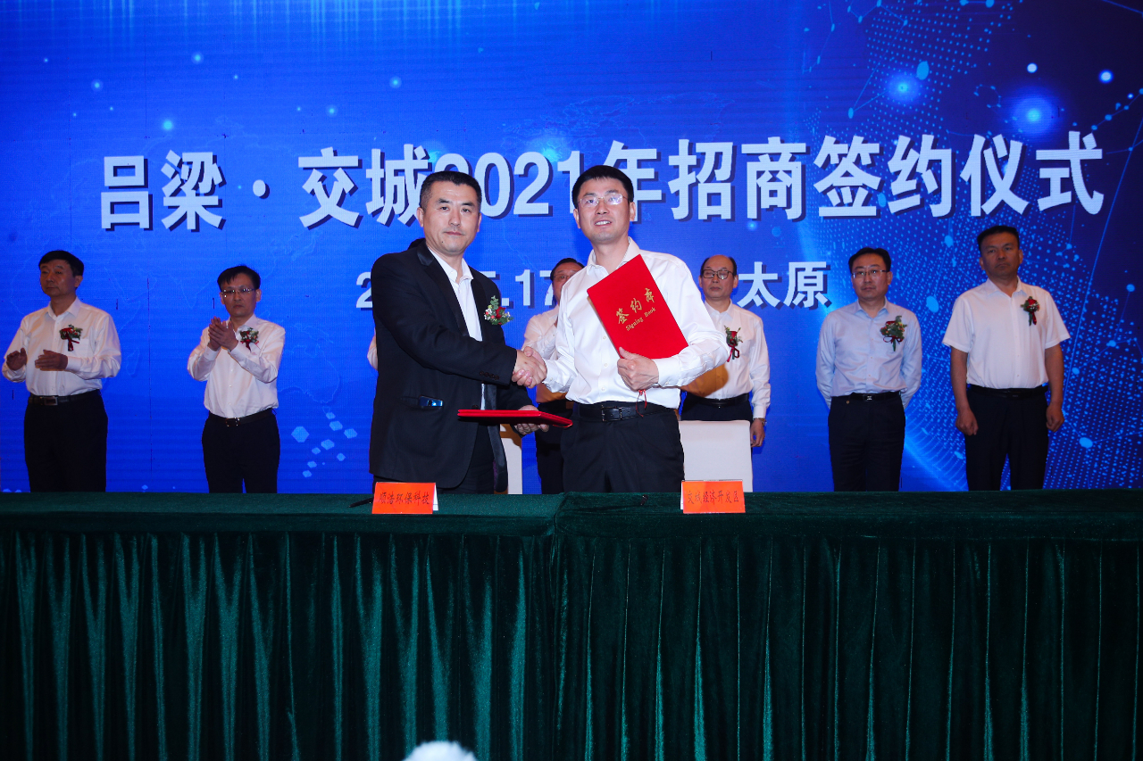 在第十二屆中國中部投資貿易博覽會即將召開之際,5月17日上午,由交城縣委、縣政府主辦的2021年招商引資推介暨項目簽約會在太原舉行。在本次招商引資中,共簽約項目6個,其中戰略協議1個、合作協議5個,總投資55.2億元。