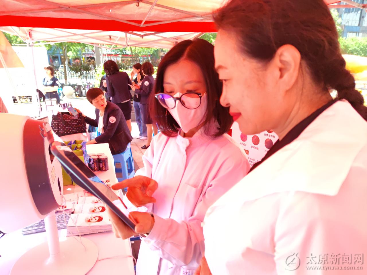 活動現場,太原市市場監管局聯合太原市藥品不良反應監測中心、小店區市場監管局等工作人員現場講解化妝品標示標簽的辨別方法,發動群眾參與,營造良好的輿論氛圍,讓假冒偽劣產品無處藏身。活動通過懸掛宣傳橫幅、擺放宣傳展板、發放宣傳材料、專家義診、現場咨詢等形式,緊緊圍繞“安全用妝美麗有法”的宣傳活動主題,向廣大群眾宣傳貫徹化妝品監管法律法規,普及化妝品專業知識,兒童化妝品安全使用及不良反應相關內容,引導消費者科學合理地使用化妝品;向過往群眾提供皮膚測試及護膚知識咨詢臺,為公眾免費測試皮膚類型并講解護膚專業知識,吸引了眾多市民前來體驗。