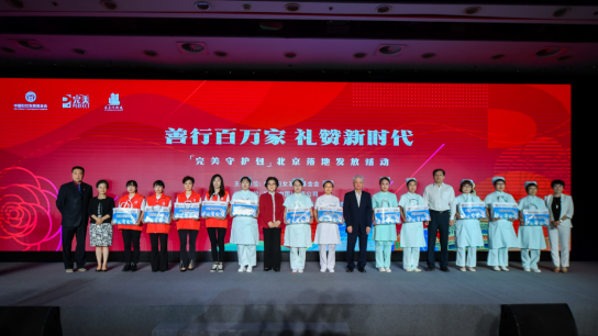 中國婦女發展基金會、東城區委、東直門街道、完美公司為24位抗疫一線女性工作者代表頒發“完美守護包”