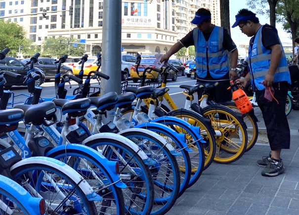 “我們認為這條斷頭路比較適合設置規范區停放共享單車,你們有什么意見,咱們一起探討。”在北京朝陽站周邊,城管隊員與3家共享單車企業的運維人員,就站區共享單車停放問題進行探討。