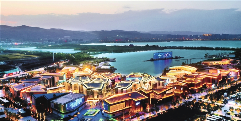 6月1日,華燈初上,晉陽里濱水商業街區燈光璀璨,格外迷人。作為太原首個濱水商業綜合體,晉陽里匯集觀光旅游、餐飲購物、休閑娛樂、文創體驗、兒童運動等多種業態,是晉陽湖片區發展的“新引擎”。米國偉攝