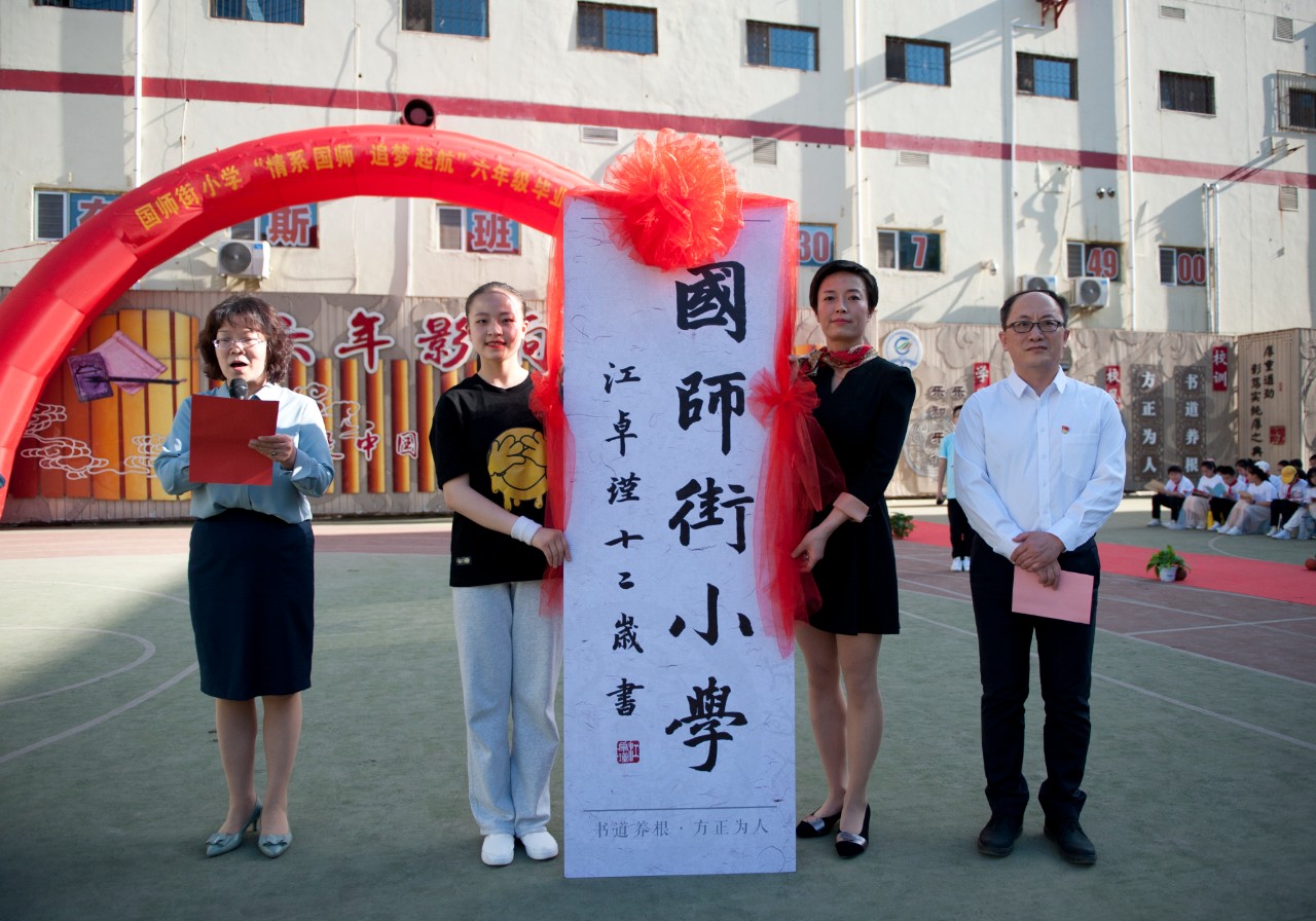 當天,該校六年級學生江卓瑾為學校題寫了校名牌匾,這個牌匾不日將懸掛在國師街小學校門口。