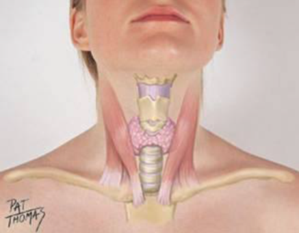 甲狀腺是人體內(nèi)非常重要的內(nèi)分泌腺,它位于頸前部,甲狀軟骨下方,以氣管為中心分布兩旁,以峽部相連,左右基本對稱,上起甲狀軟骨,下至第6氣管軟骨環(huán),形似蝴蝶,猶如盾甲,故以此命名。正常的甲狀腺在超聲下表現(xiàn)為形態(tài)相對規(guī)則、包膜光滑、實質(zhì)回聲中等、分布較均勻的圖像,大小上下徑約4cm至6cm,左右徑約2cm至2.5cm,前后徑約1.5cm至2cm,峽部一般小于0.3cm。