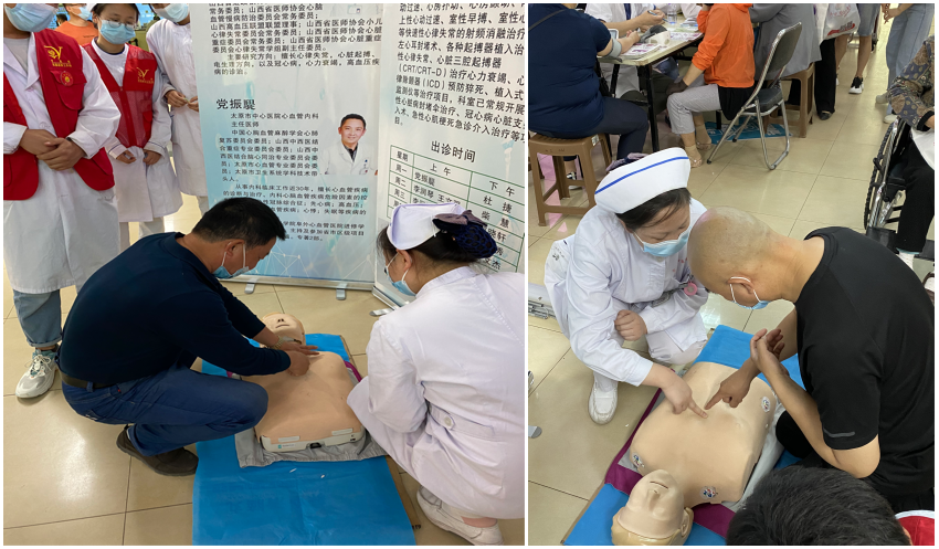南丁格爾志愿服務隊為往來的市民教授心肺復蘇技術,現場氣氛熱烈,市民參與度極高。