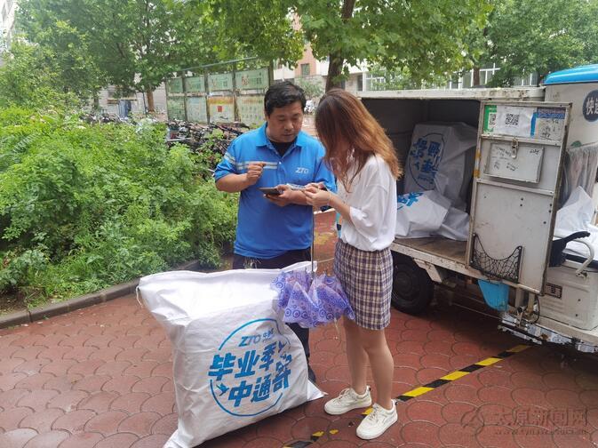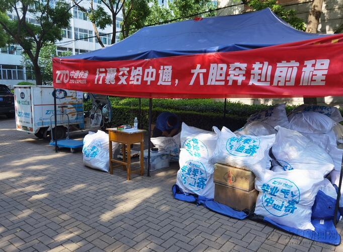 6月12日,在山西大學校園內,山西中通的工作人員正忙著給學子辦理校園包裹速遞業務。眼下,各高校進入“畢業寄”高峰期,快遞小哥進入校園設立收寄點“現場辦公”,畢業生們則是手機下單,寄遞效率更快,沒有了往年排隊等候的現象。當天,山西中通也發布了一份寄遞“小貼士”,供畢業生參考。