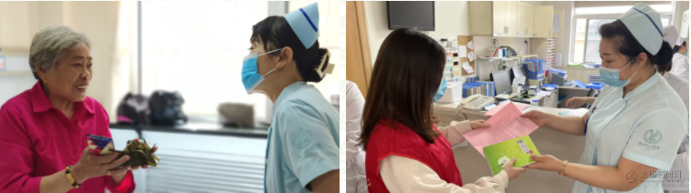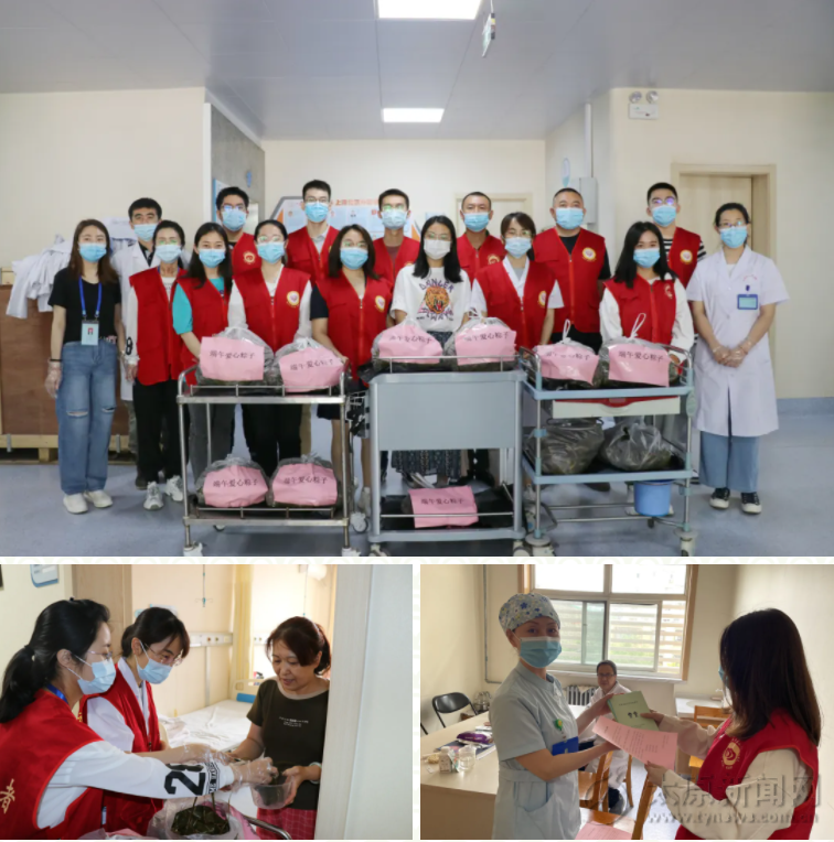 11日上午,副院長趙鴻凌、紀委書記趙敏帶領院工會、團委的青年志愿者們,把黨史學習教育和文明城市創建工作的宣傳資料,還有大家親手包的飽含著關愛的粽子送到了患者和一線醫務人員手中,共同分享節日的溫暖和甜蜜。