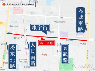 太原交警支隊6月19日消息,2021年6月23日0時——2021年12月23日24時,康寧街(汾東北路——塢城南路)進行第二階段施工,為最大限度保障周邊居民出行,降低因施工對道路交通的影響,施工將釆取半幅封閉作業,半幅雙向通行的導行措施(2021年6月23日0時至2021年9月23日24時南半幅封閉施工,北半幅東西雙向通行;2021年9月23日0時至2021年12月23日24時北半幅封閉施工,南半幅東西雙向通行),期間,與康寧街相交的人民北路、真武路正常通行,路口交通組織不變。